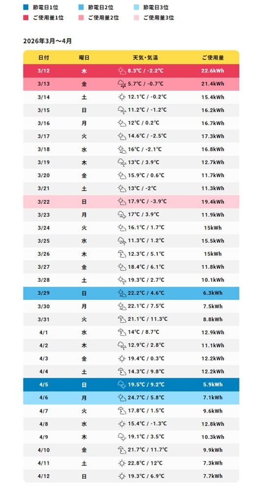 | 2026年3月~4月受給電力量(kWh) | 売電価格 |