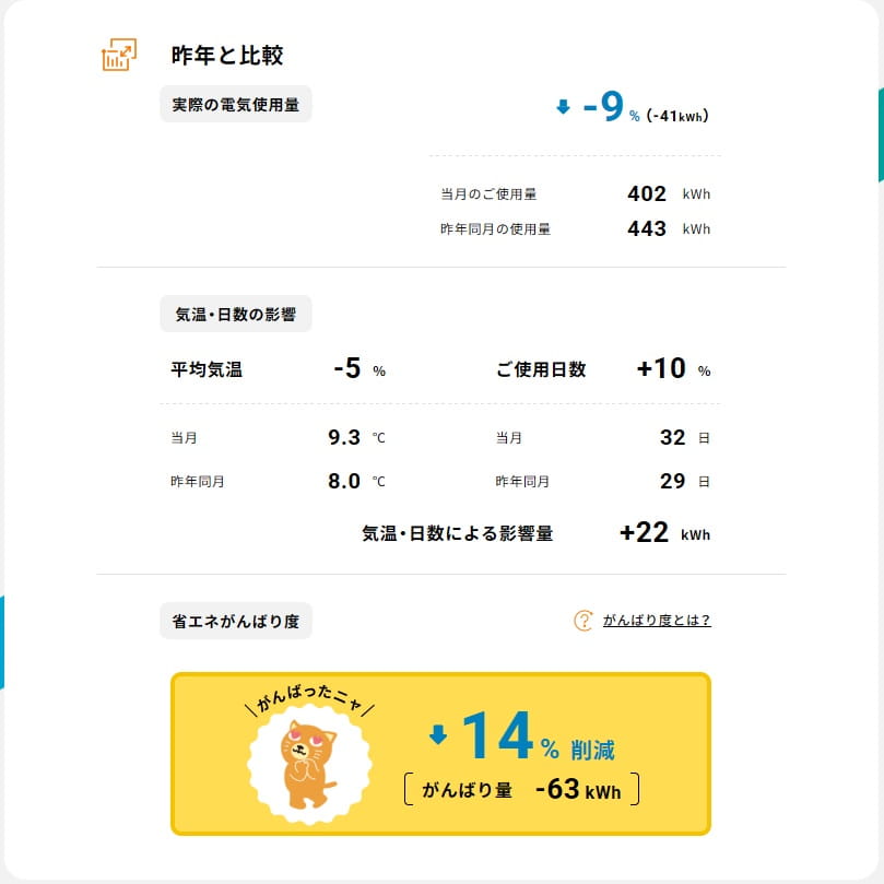 前年同月実績(2025年3~4月、29日間)は、470kWhで11280円でした。